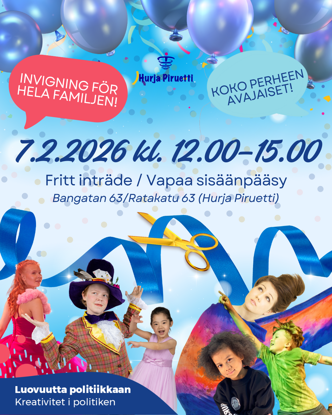För barnFör barn erbjuds aktiva lektioner – barndans, minibalett och akrobatik. På barndanslektionerna kan man delta från 3-årsåldern, för akrobatik krävs att barnet är 4 år. Under lektionerna övar vi på kunskaper att delta i grupp, grundrörelser, vi lär känna vår egen kropp och begrundar rytmer och rum. Vi bekantar oss med dansens och akrobatikens värld genom lek och kreativa övningar. Lektioner riktade till barn utgör en start för fortsatta dansstudier. Barntimmar stärker grundläggande färdigheter och fungerar som en bra språngbräda för konstundervisning som börjar i skolåldern. |