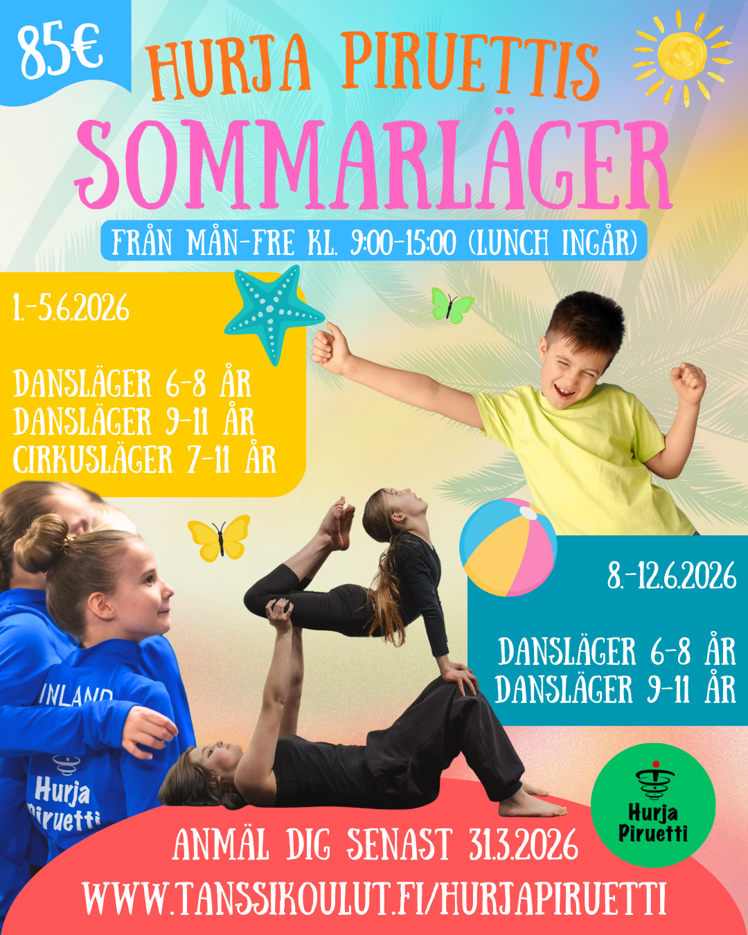 För unga och ungdomarVi erbjuder för 7-åringar och uppåt grundläggande undevisning i dans inom olika grenar. Vårt utbud består av bland annat av nutidsdans, klassisk balett, hiphop, break, locking, dance, showdance och commercial dance samt kroppsvård och akrobatik. För grundstudierna i dans kan man välja mellan allmän eller fördjupad lärokurs. Det går att delta i en lektion per vecka för egen glädje eller så kan man välja att satsa mera målinriktat och erlägga studier enligt den fördjupade läroplanen för dans. Som huvudämne i de fördjupade studierna kan du välja nutidsdans eller streetgrenar. Lärarna hjälper dig med de olika studiestigarna. Du kan också få hjälp av Ulla Koho som ansvarar för studiehandledningen. |